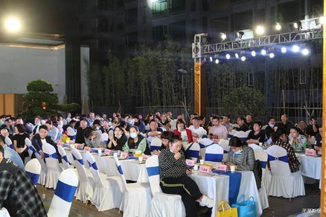 经销商晚宴当日晚6时许,以【乘“圣”跨越】为主题的,JIUYOU.COM-九游集团集团第45届国际家具展接待晚宴暨2020年度优秀经销商颁奖盛典,在营销中心四楼景观花园隆重举行,来自全国各地的经销商朋友欢聚一堂,共同分享一场精彩纷呈的晚宴。